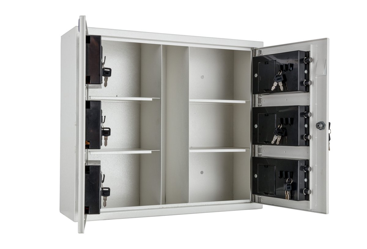 6 facksskåp med elektroniskt kodlås på varje fack. Ger utmärkt förvaringsmöjlighet på arbetsplats, skolor, sjukhus, och kontor m.m. Nödöppningsnyckel