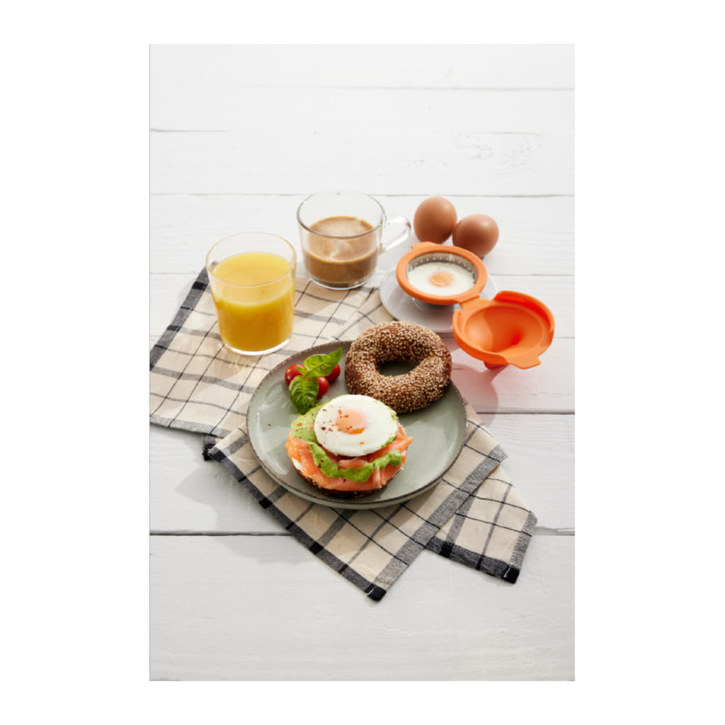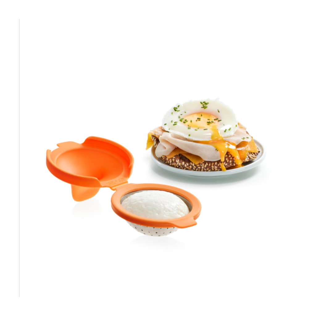 Gör pocherade ägg enkelt med den traditionella bain-marie-processen för ett perfekt resultat. Produkten flyter i vattnet för perfekt tillagning, och du kan hålla den i Platinum Silikon-toppen utan risk för att bli skållad. Designen av koppen i rostfritt stål håller ägget i direkt kontakt med vattnet för snabbare tillagning. Upptäck ett oändligt utbud av recept perfekta för en hälsosam frukost och helgbrunch, såsom: Eggs Benedict, avokadotoast, eggs Florentine eller pocherade ägg med pesto.