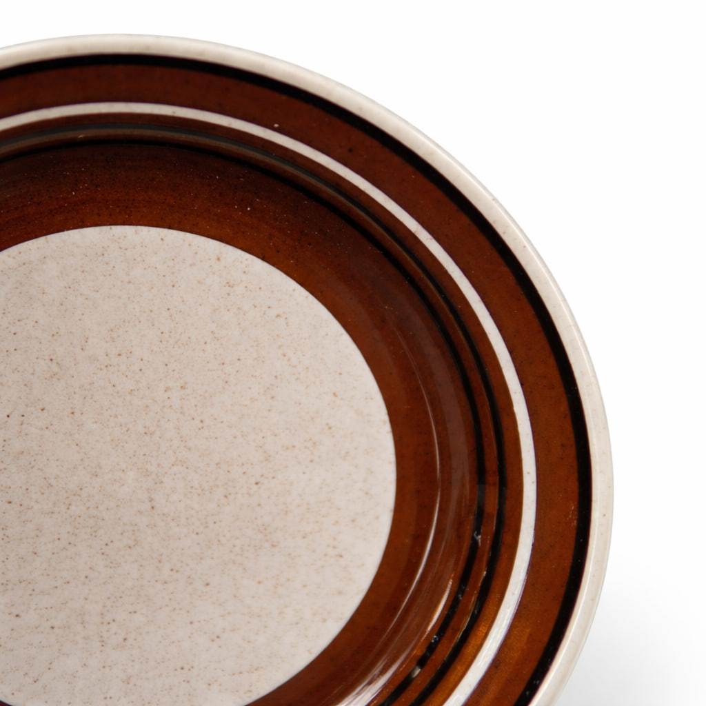 Assiett ur Isolde-serien från Rörstrand. Flintgods med bruna band och svarta ränder. Svensk 70-talsklassiker. Säljs styckvis.
