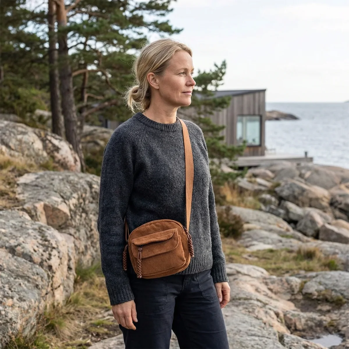 Upptäck en liten väska som gör vardagen både enklare och mer stilren. Den här axelväskan i mjuk manchester är designad för dig som vill bära lätt men ändå ha allt viktigt nära till hands. Med sin kompakta storlek är den perfekt för mobil, plånbok, nycklar, smink och andra småsaker du behöver under dagen.