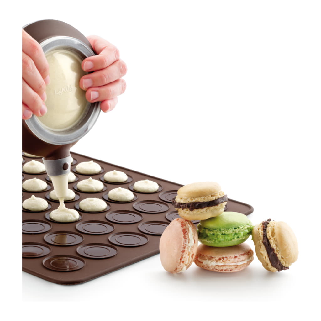 Ett lättföljt ark för att baka 24 Macarons i en enda omgång. Tillverkad av 100% Platinasilikon. Upptäck recepten och laga sofistikerade och läckra Macarons hemma. Standardstorlek för de flesta konventionella ugnar.
