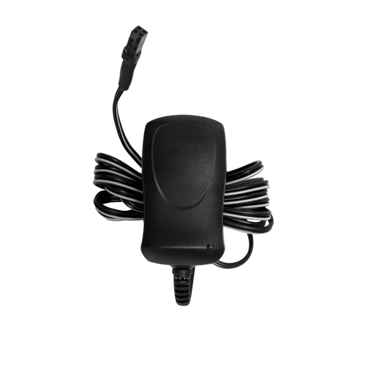 En batteriadapter som gör det möjligt att välja mellan batteri- eller eldrift på ditt elektroniska kodlås. Kabeln kopplas in i batteriuttaget på låskistan och går via insidan av skåpet till närmaste eluttag. Beroende hur stort skåpet är och tillgång till hål, kan eluttaget kan sitta på både in eller utsidan av skåpet.