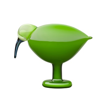 Birds by Toikka Ibis har en intensiv grön färg. Det underliggande opaka glaset ger djup åt ytfärgen och det transparenta lagret efterliknar spelet av vatten i fågelns fjäderdräkt.