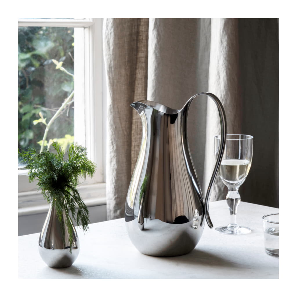 Den 1-liters vattenkannan från Drift-kollektionen kombinerar tidlös elegans med funktionell design. Tillverkad av 18/10 rostfritt stål och en spegelpolerad finish, ger denna kanna en lyxig känsla vid varje servering.