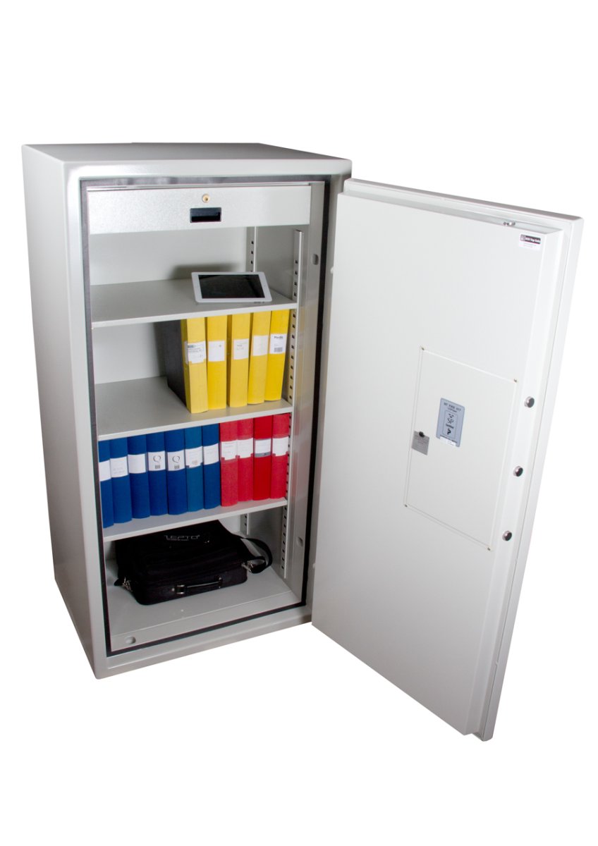 ES-serien består av brandskyddade dokumentskåp som skyddar papper vid brand. Skåpen är testade att skydda papper 2 timmar i ca 1000 graders värme. Skåpen är inredda med flyttbara hyllor för A4-pärmar samt en låsbar låda. Lådan kan lätt demonteras och då kan utrymmet nyttjas till pärmförvaring. Skåpen är som standard utrustade med elektroniskt kodlås med […]