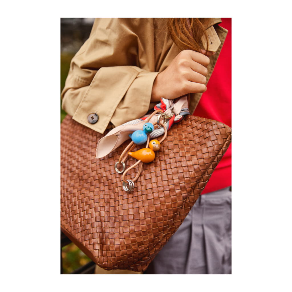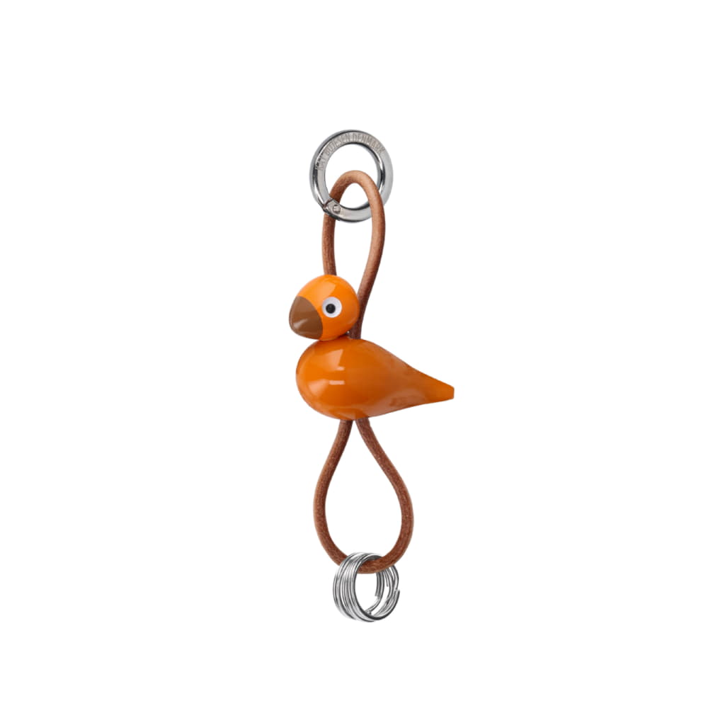 Ta med dig Kay Bojesens älskade klassiker och din kärlek till original dansk design överallt. På väskan. På bältet. Eller med bilnycklarna. Denna Kay Bojesen-nyckelring har en orange sångfågel i miniatyrutgåva, tillverkad i FSC®-certifierad bokträ, och kompletteras med en elegant och praktisk snodd i äkta läder. Snodden kan justeras upp och ner i förhållande till figuren, så att du kan skapa ditt helt egna uttryck. Överst sitter en stor silverfärgad nyckelring graverad med Kay Bojesen Denmark, som både fungerar som en stilren detalj och en praktisk funktion med sin smarta karbinhake för enkel öppning och stängning. Under figuren hänger tre extra nyckelringar, så att du har gott om plats för alla dina nycklar. Med en stilren och dekorativ nyckelring från Kay Bojesen Denmark kan du enkelt ge vardagen en personlig touch och ta med original dansk design vart du än går – med den klassiska sångfågeln som din alltid trogna följeslagare.