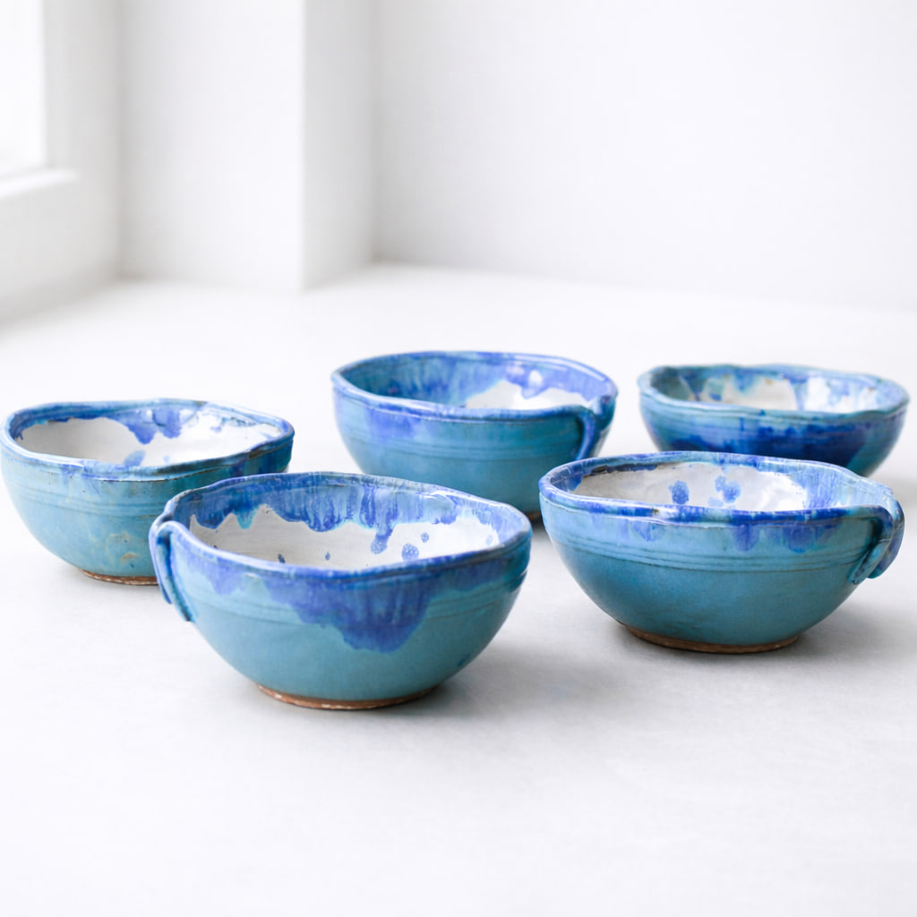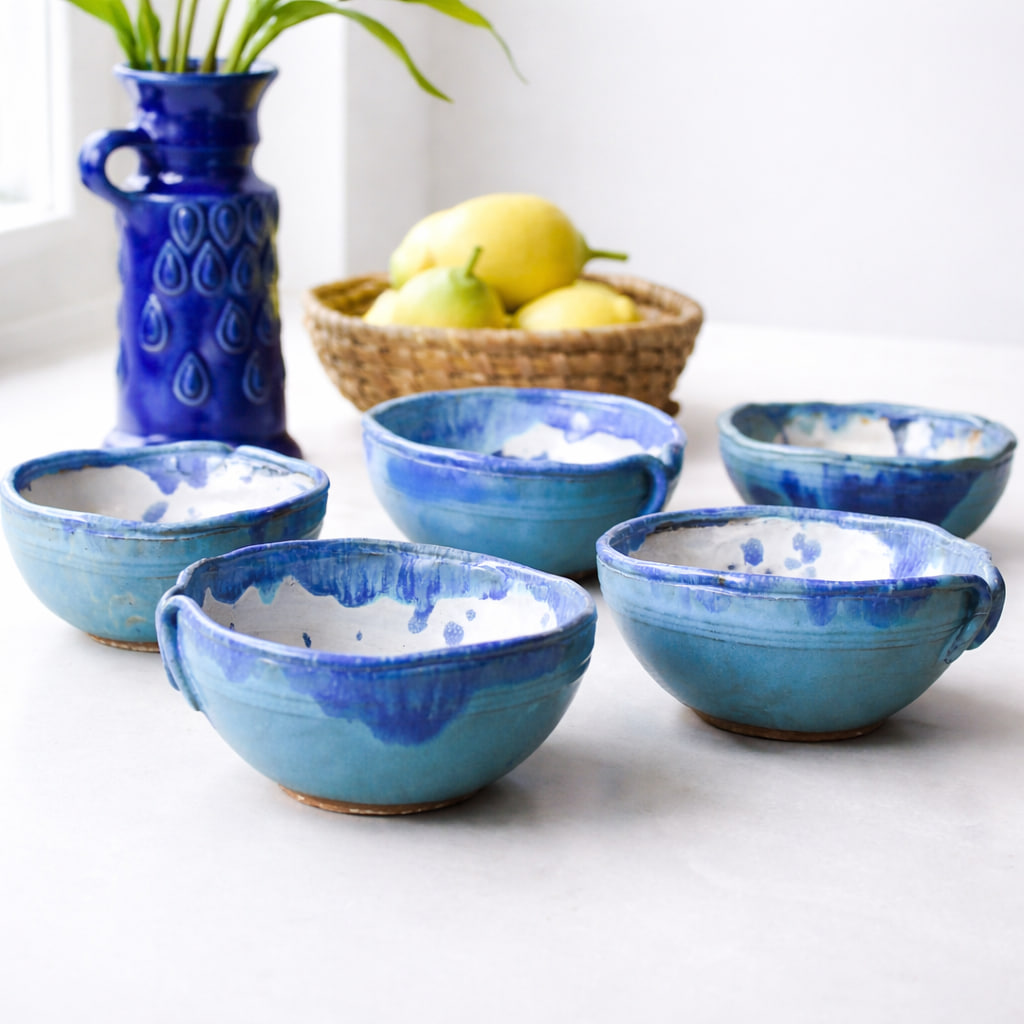 Handgjorda keramikskålar i blå glasyr – 6 st