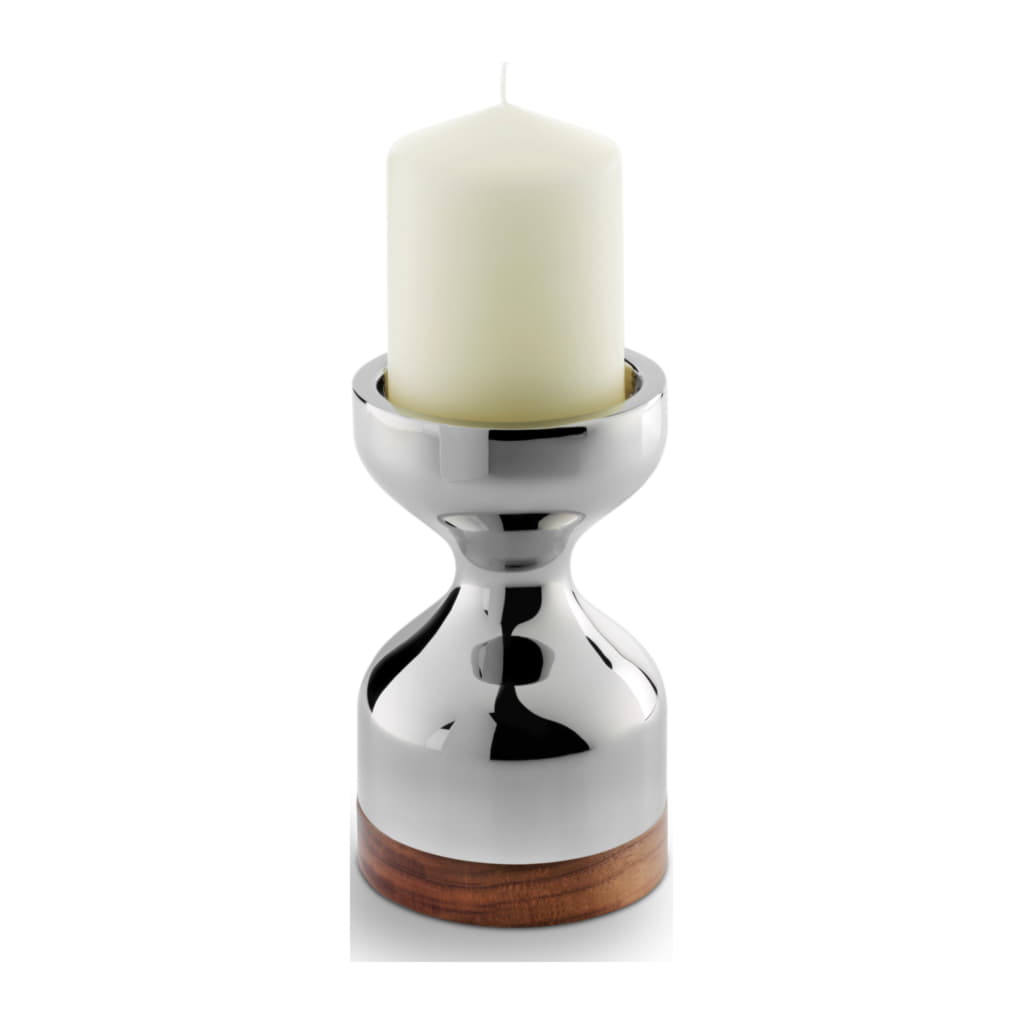 Med ekon av klassisk design är Limbrey ljusstake inspirerad av ett original Robert Welch design från 1960-talet.Timglasformen speglar flamman som sprider ett vackert ljus. Ljusstaken har en elegant kontrast av högglanspolerat rostfritt 18/10 stål med accenter av varm valnöt. Ljusstakarna är uppkallade efter John Limbrey, silversmed och designer, som arbetade med Robert Welch i över 40 år. De ursprungliga ljusstakarna producerades för Heal´s of London och gjordes av silver och rosenträ . OBS. På grund av den naturliga trämaterial som används för att producera denna produkt kan färgvariationer förekomma .