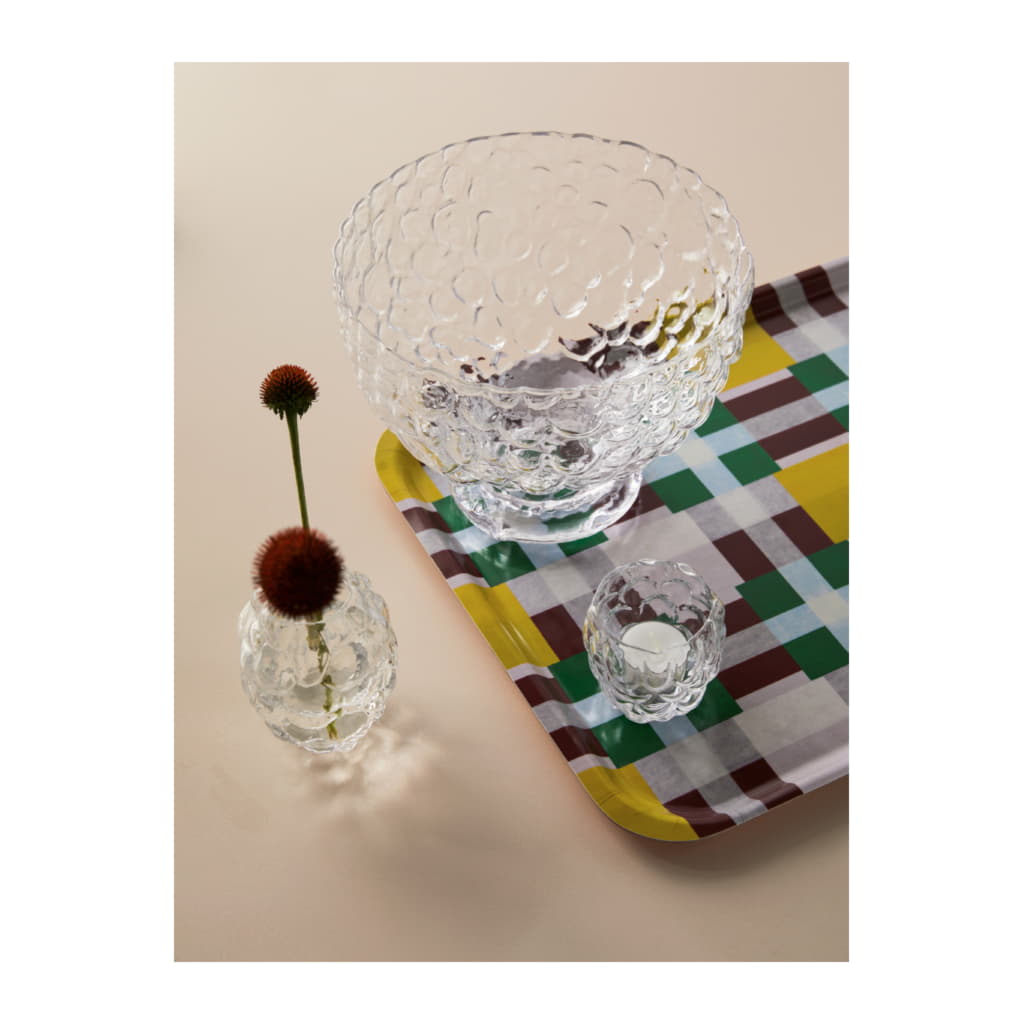 Serien Moss från Kosta Boda är skapad ur återanvända gamla formar från Kosta Glasbruk som karvats ur för hand för att få fram en unik, böljande och levande yta i glaset. Skålen tillverkas nu i klarglas och ger en dimension av liv där bland annat frukt, bär eller till och med champagnebål kan bubbla upp. Tillverkad i Kosta med design av Åsa Jungnelius och togs initialt fram i ett samarbete med Göteborgs Operas 30års jubileum.