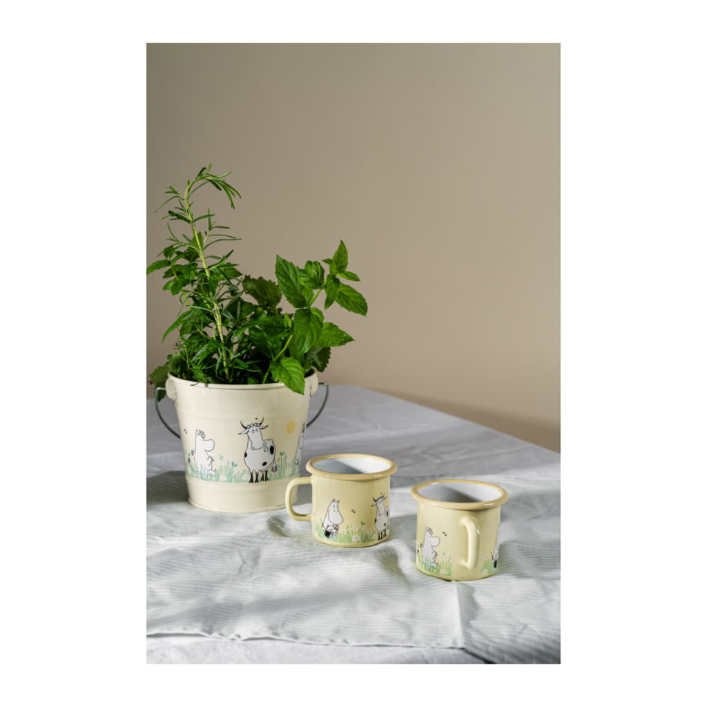 Hink tillverkad av galvaniserat stål med trädetalj i handtaget. Snygg inredning i köket, fönstret eller barnrummet. Handdisk.