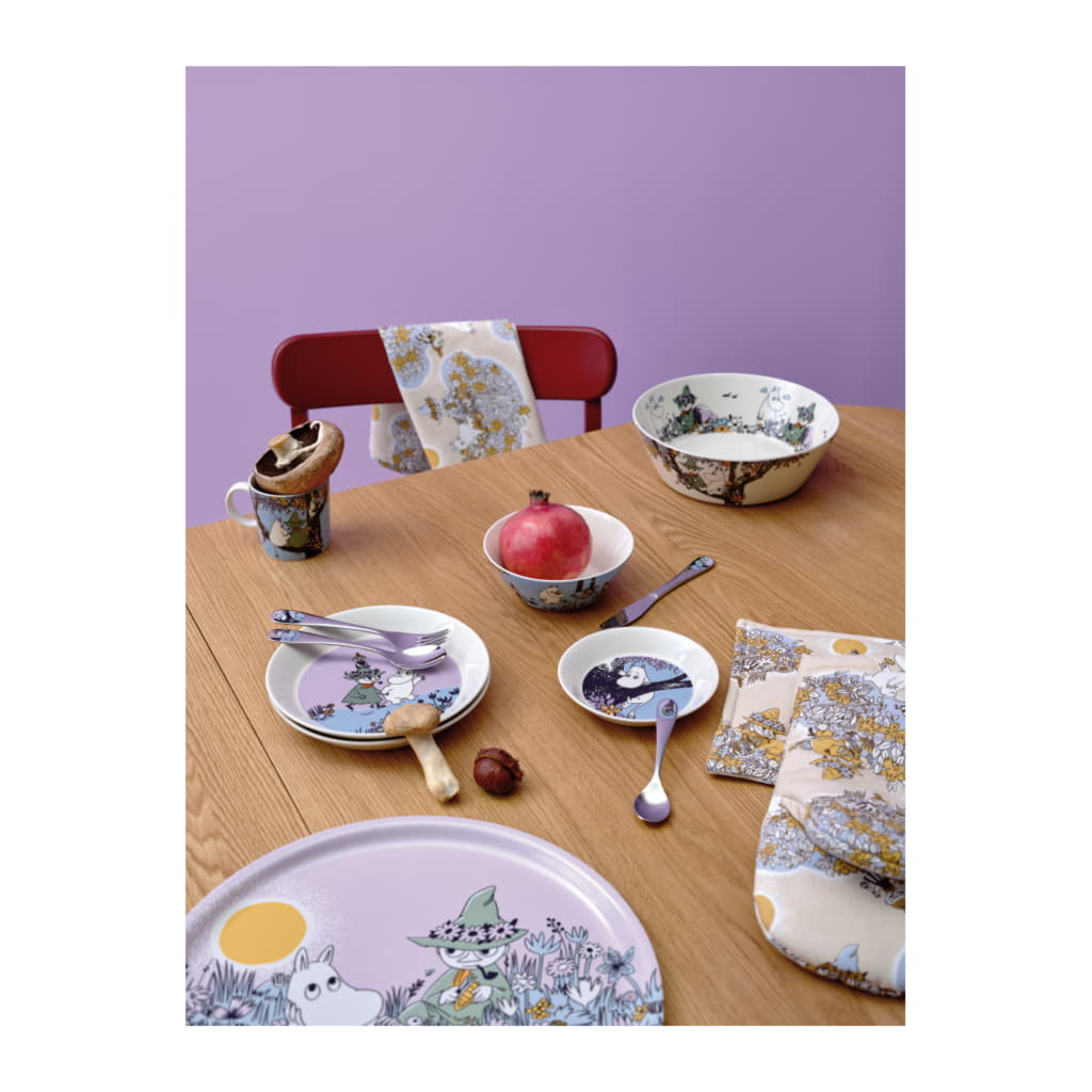 Kollektionen “Mumin 80” uppmärksammar värderingarna som förenar oss med Mumintrollen – kärlek, vänskap och acceptans. Kollektionen hyllar den äventyrliga trion Snusmumriken, Mumintrollet och Lilla My. Moomin Arabia tillbringare 1 l, Vänner för alltid