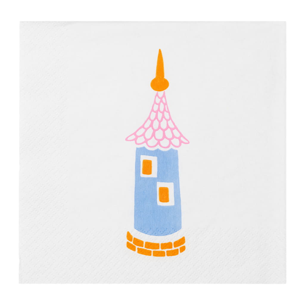 De starka färgerna på produkterna i kollektionen “Fest” gör dem perfekta för sommarfester i trädgården. De lekfulla mönstren i kollektionen Fest är baserade på tidiga muminmönster från 1950-talet med många roliga detaljer. Duka bordet med de roliga muminmönstren och bjud in dina nära och kära på fest! Moomin Arabia pappersservett 33 cm, Fest