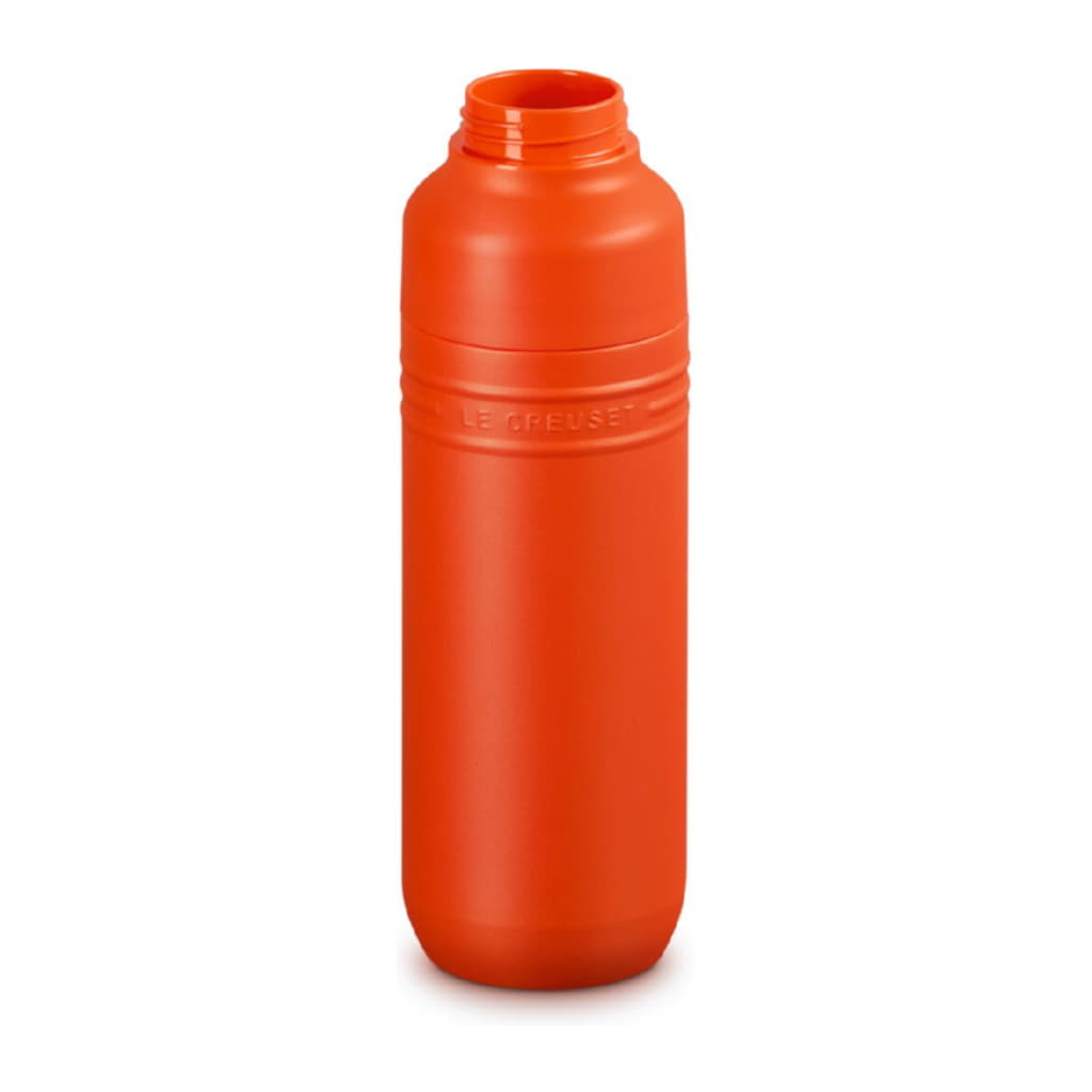 Designad för komfort, den isolerade vattenflaskan från Le Creusets On the Go-kollektion har en smal toppöppning för enkel drickning, samt en bredare öppning som är perfekt för att lägga i isbitar, citron eller myntablad. Den bredare öppningen gör även påfyllning och rengöring smidig. Tack vare vakuumisolering med dubbla väggar håller sig dina drycker varma eller kalla i flera timmar. Den slitstarka, färgglada ytbehandlingen är reptålig och behåller sitt ikoniska utseende, med en generösa kapacitet på 1 liter. Flaskan har täta lock som förhindrar spill och är tillverkad av hygieniskt, lättrengjort rostfritt stål – din färgglada följeslagare.