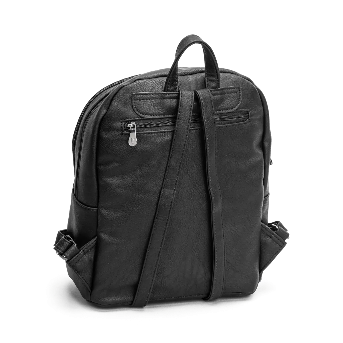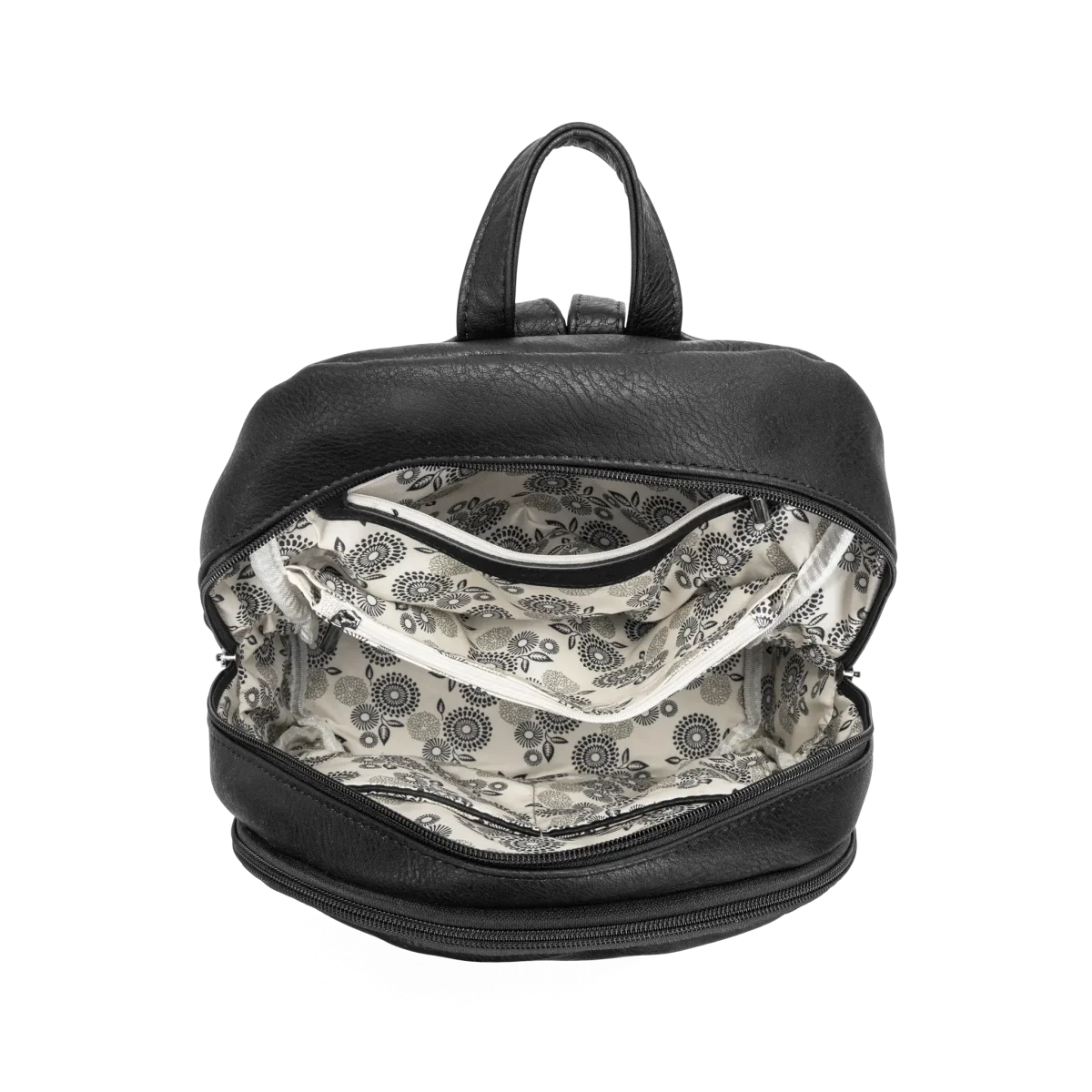 Ryggsäcken har två huvudfack med blixtlås. Det stora huvudfacket rymmer en mindre blixtlåsficka och två öppna fickor, perfekt för mobilen och småsaker. På baksidan finns ett ytterligare blixtlåsförsett fack för säker förvaring av värdesaker.
