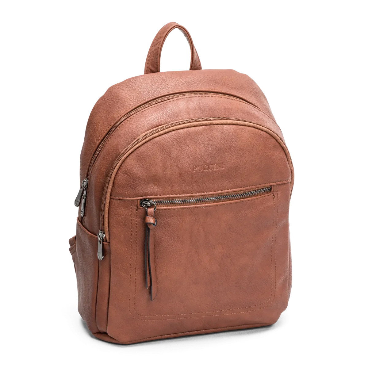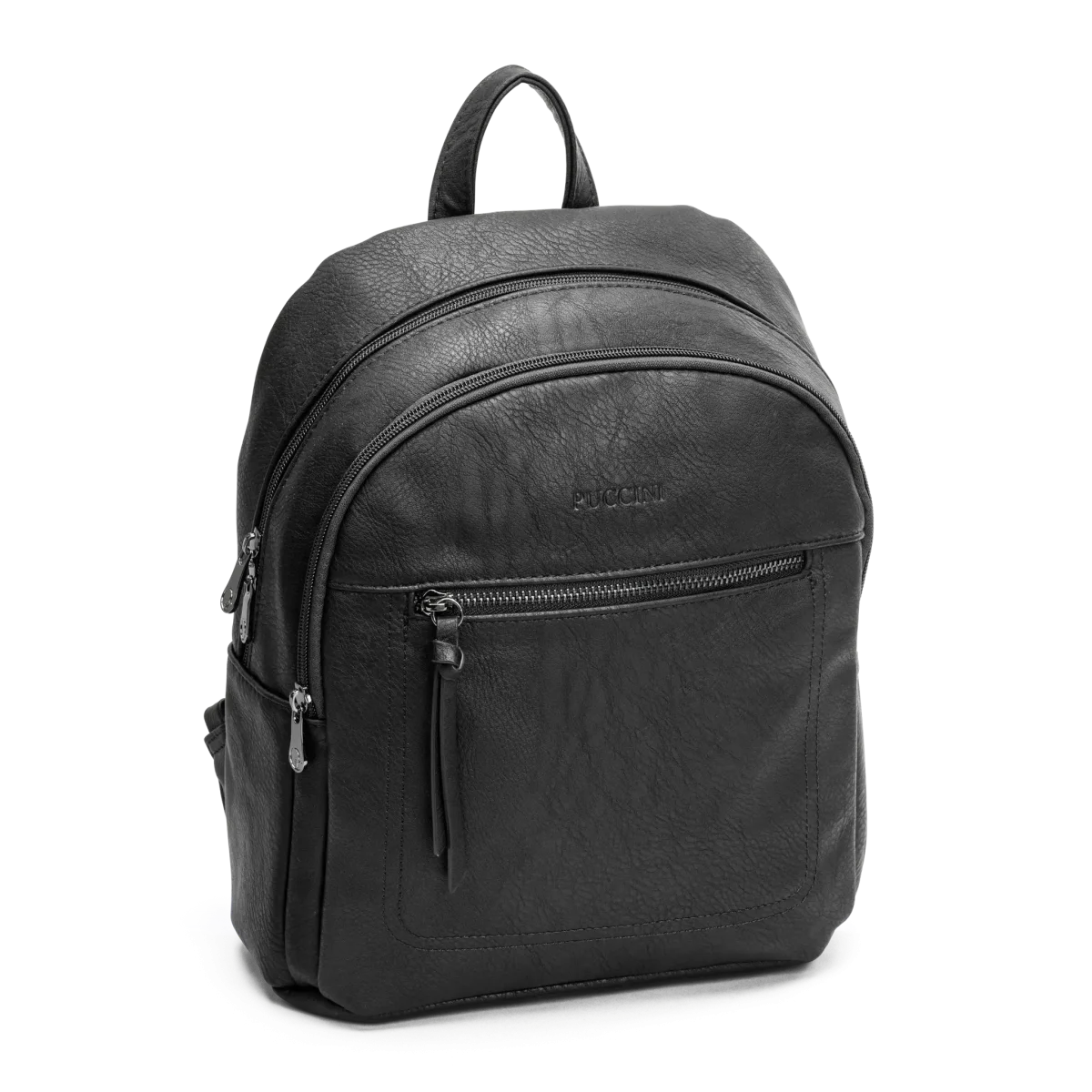 Denna klassiska och rymliga ryggsäck från Puccini är tillverkad i skinnliknande imitation med en elegant tvåtonseffekt. Den har justerbara axelband, en praktisk hank upptill och ett dekorativt blixtlåsförsett fack på framsidan. Perfekt som en funktionell vardagsryggsäck.