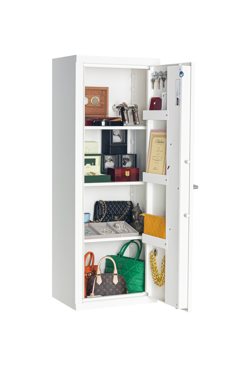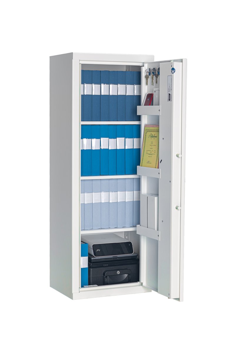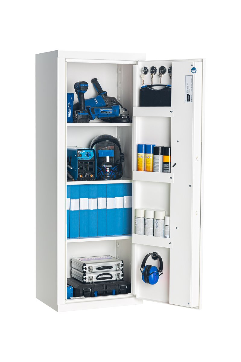 Skåpen går att få med nyckellås eller elektroniskt kodlås, certifierade enligt SSF 3880. Säkerhetsskåpen går att utrusta med en mängd olika tillbehör-hyllplan, nyckelkrokar, mapphängare, värdefacksskåp etc.