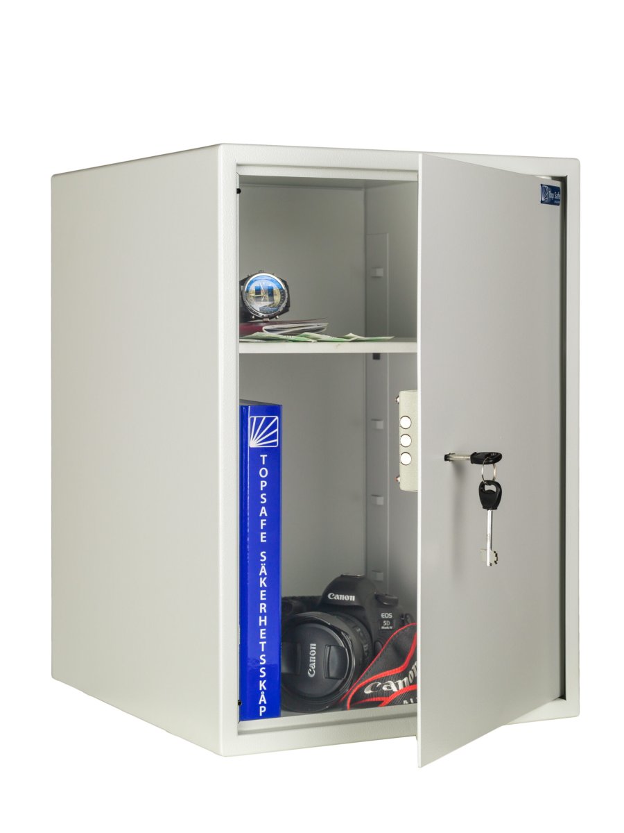 Inbrottsfördröjande skåp T-56 nyckellås. Passar utmärkt för förvaring i hemmet, stugan eller på kontoret. Skåpet går även att använda som innerfack i ett större säkerhetsskåp.