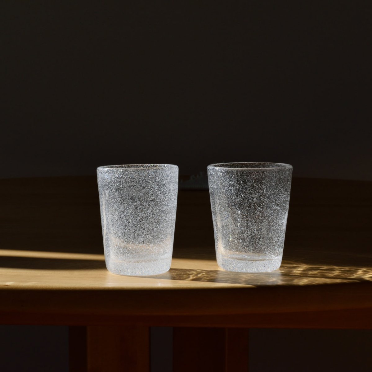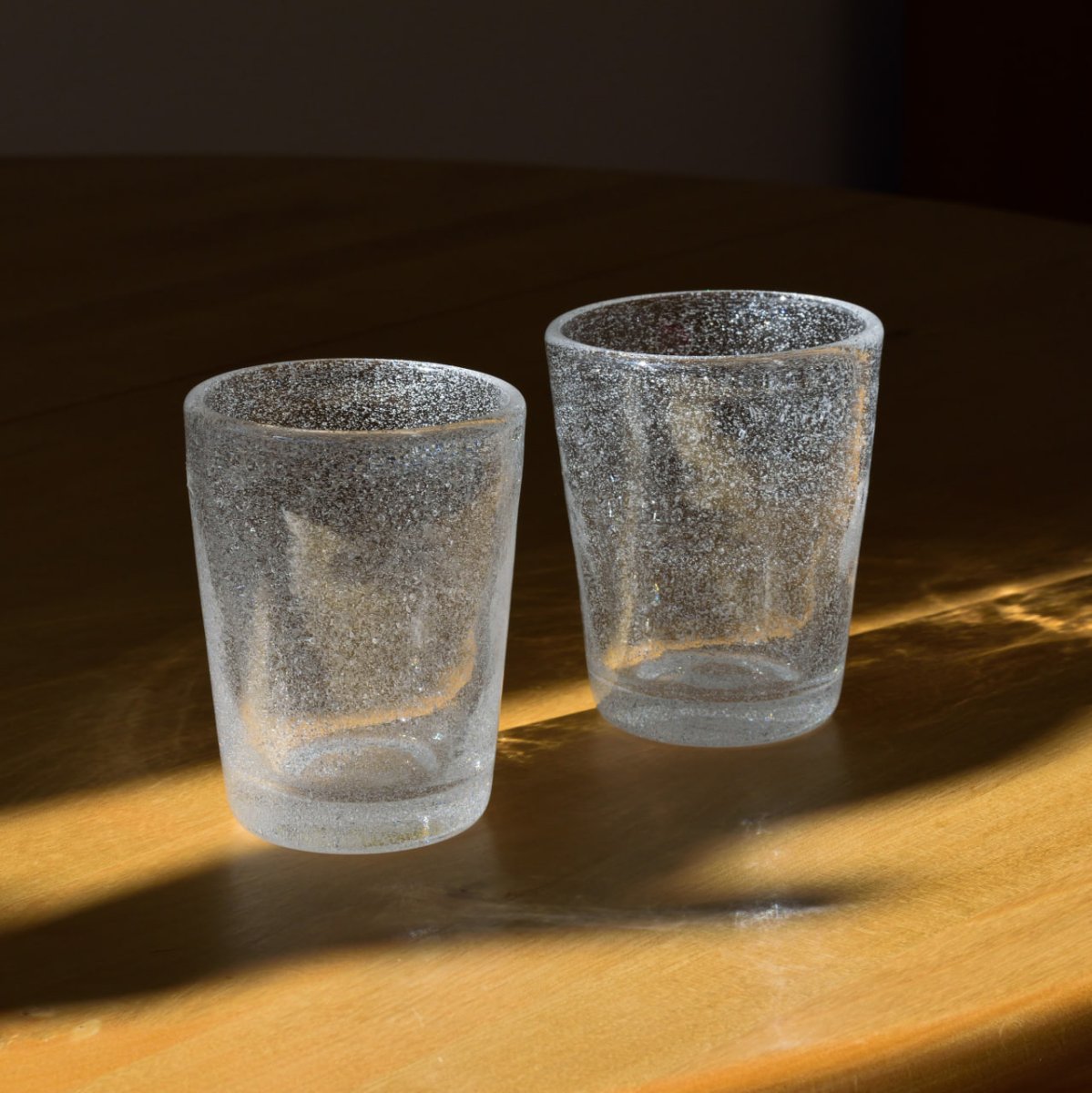 Den innovativa designen gör att ljuset reflekteras på ett vackert sätt, vilket förstärker den luftiga och fräscha känslan. Glasens höjd på 10 cm och diameter på 8 cm gör dem perfekta för servering av vatten, juice, cocktails eller andra kalla drycker.